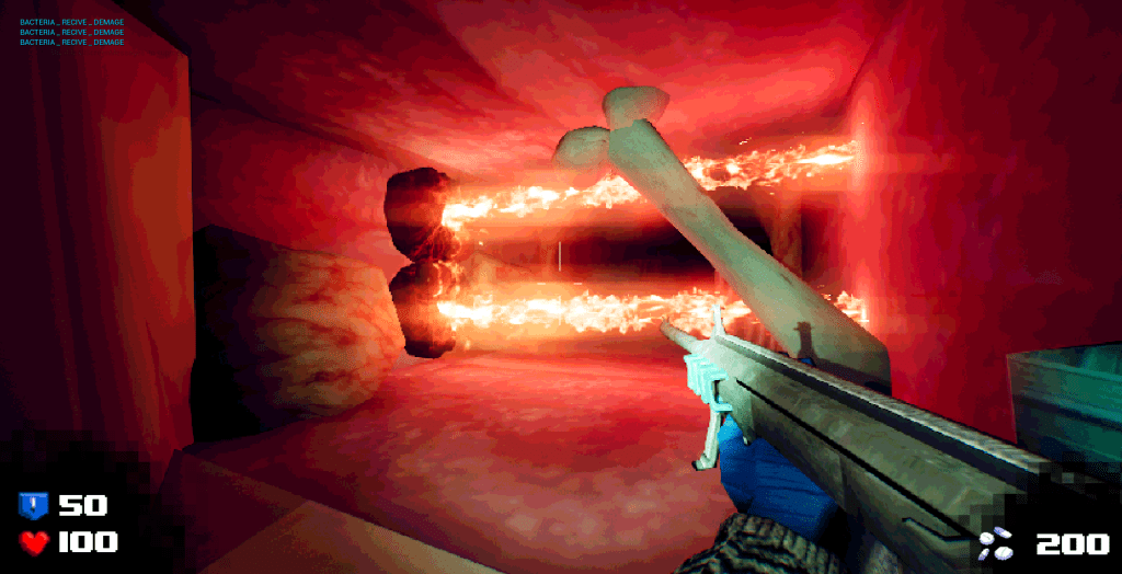 Projekt łączy szybki, agresywny gameplay z nietypowym, humorystycznym settingiem – gracz trafia do organizmu zatrutego bohatera i eliminuje bakterie za pomocą „dezynfekujących” broni.