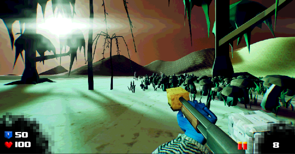 Dynamiczna, futurystyczna gra inspirowana stylistyką PS1/PS2 oraz mechaniką DOOM Eternal.